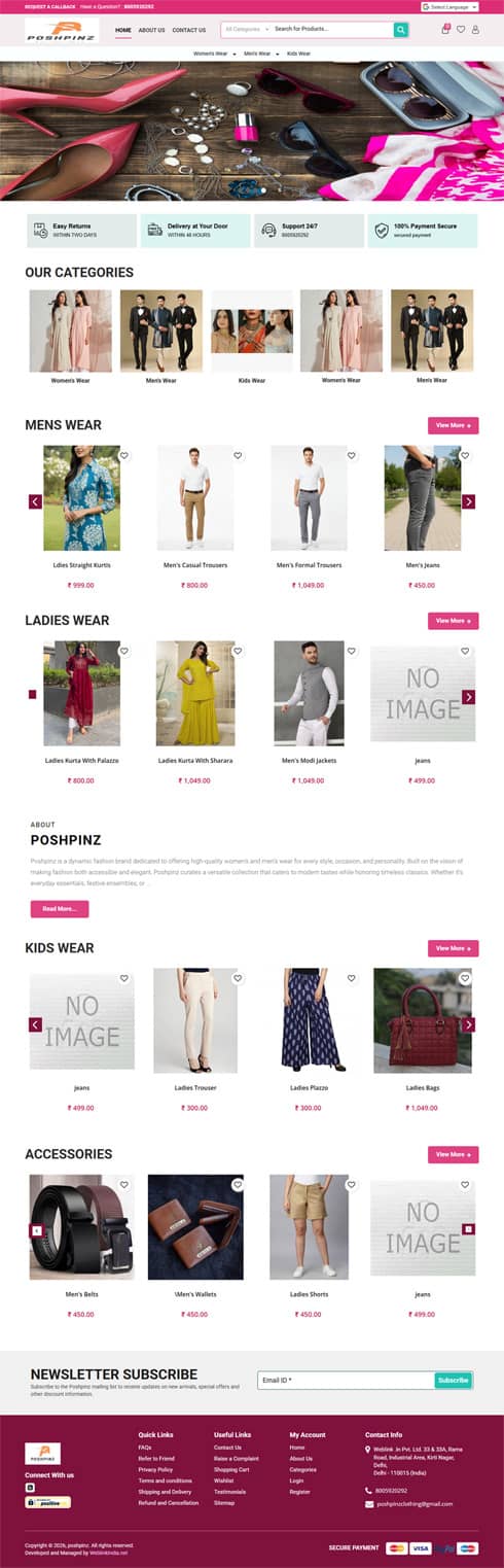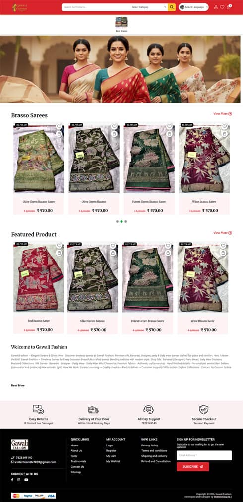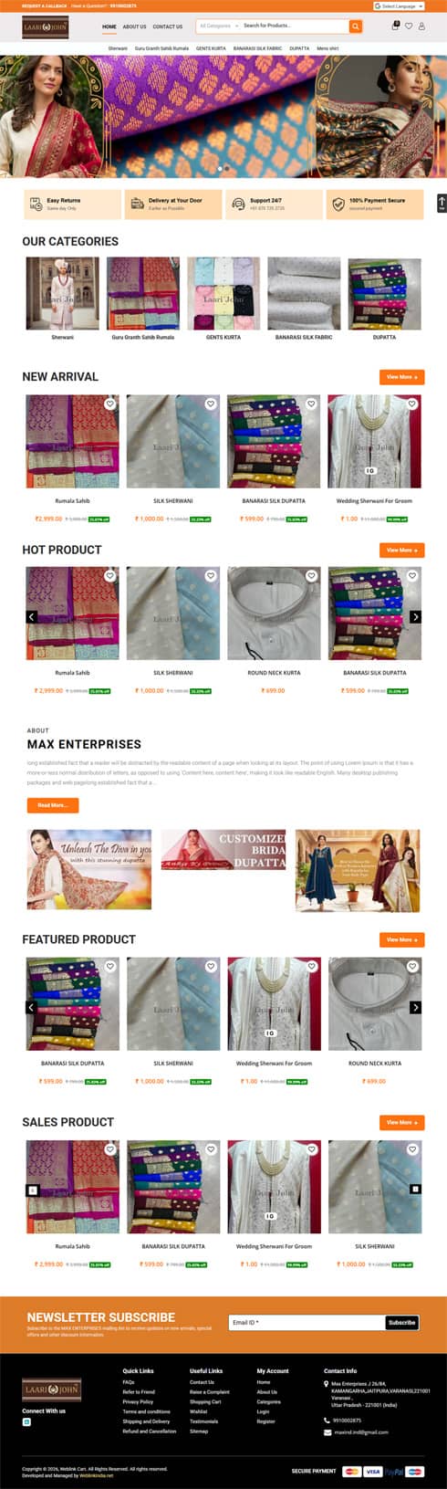 While developing and designing an apparel and garment website, the main focus needs to be on image quality and product description. Other features like product videos, seamless navigation, and clear representation of products also play a key role in creating a website that represents apparel and garments companies online. At WeblinkIndia, we excel in developing and designing apparel and garment websites. Our web designers bring together their creativity, innovative thinking, and technical expertise in web designing to create a website that sells effectively. To know more about our apparel and garment websites, here are some of our best creations.